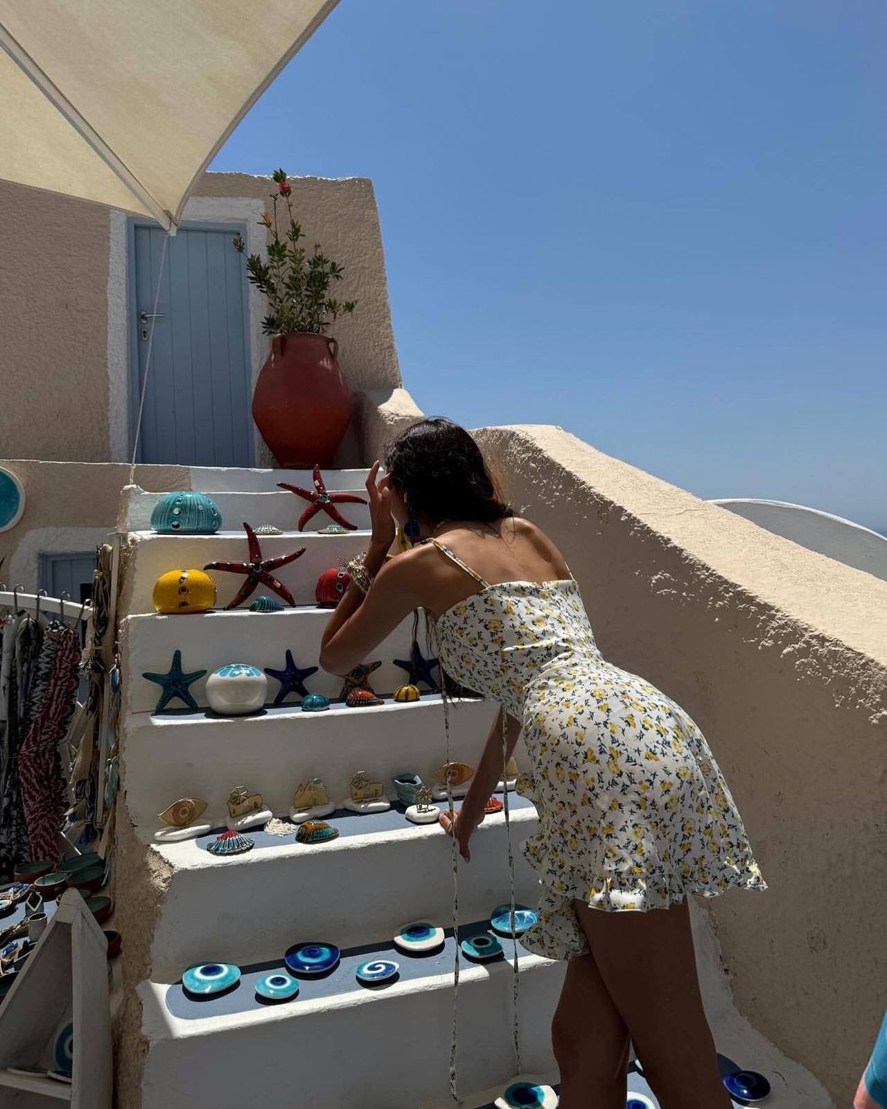 Haljina koju nosiš kad znaš da svi gledaju jer je lepršava, zavodljiva i ultra cool. Cvetni print, špic izrez i vezivanje koje naglašava struk - sve što treba jednoj IT girl da zablista od Santorinija do Instagrama.