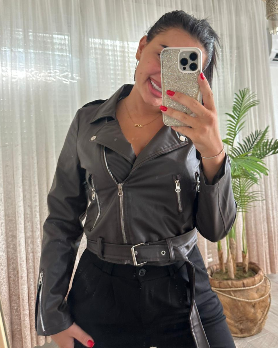 Izrađena od visokokvalitetnog materijala sa efektnim crnim finišem, ova jakna donosi savršen spoj ženstvenosti i snage. Kratki kroj naglašava siluetu, dok detalji na rajsferšlusima i ramenima daju dozu urbanog karaktera.