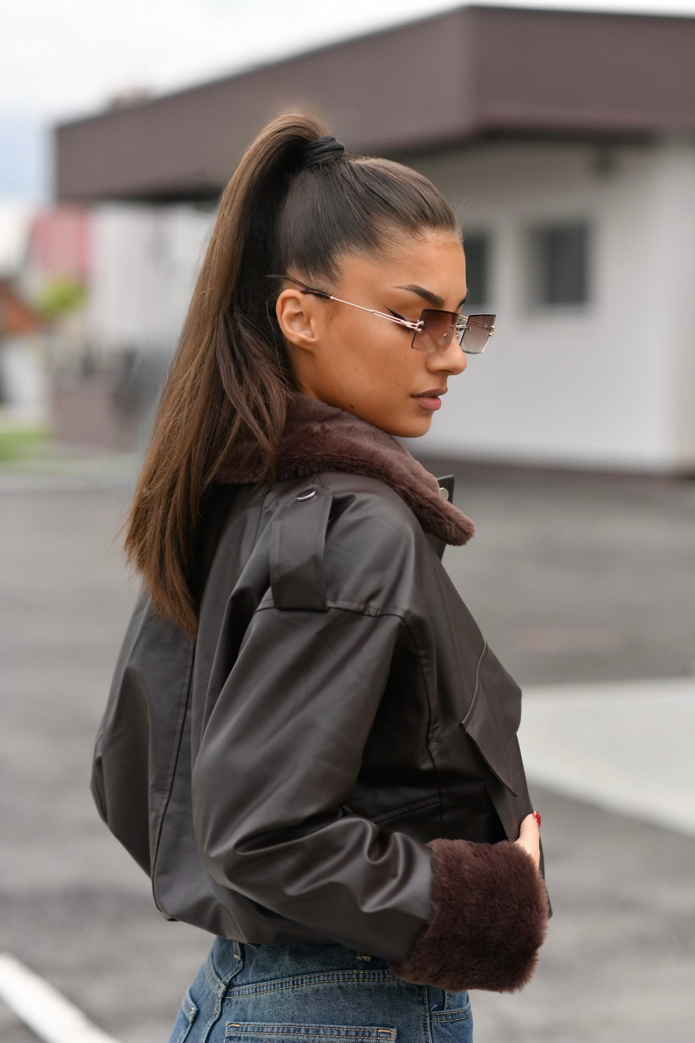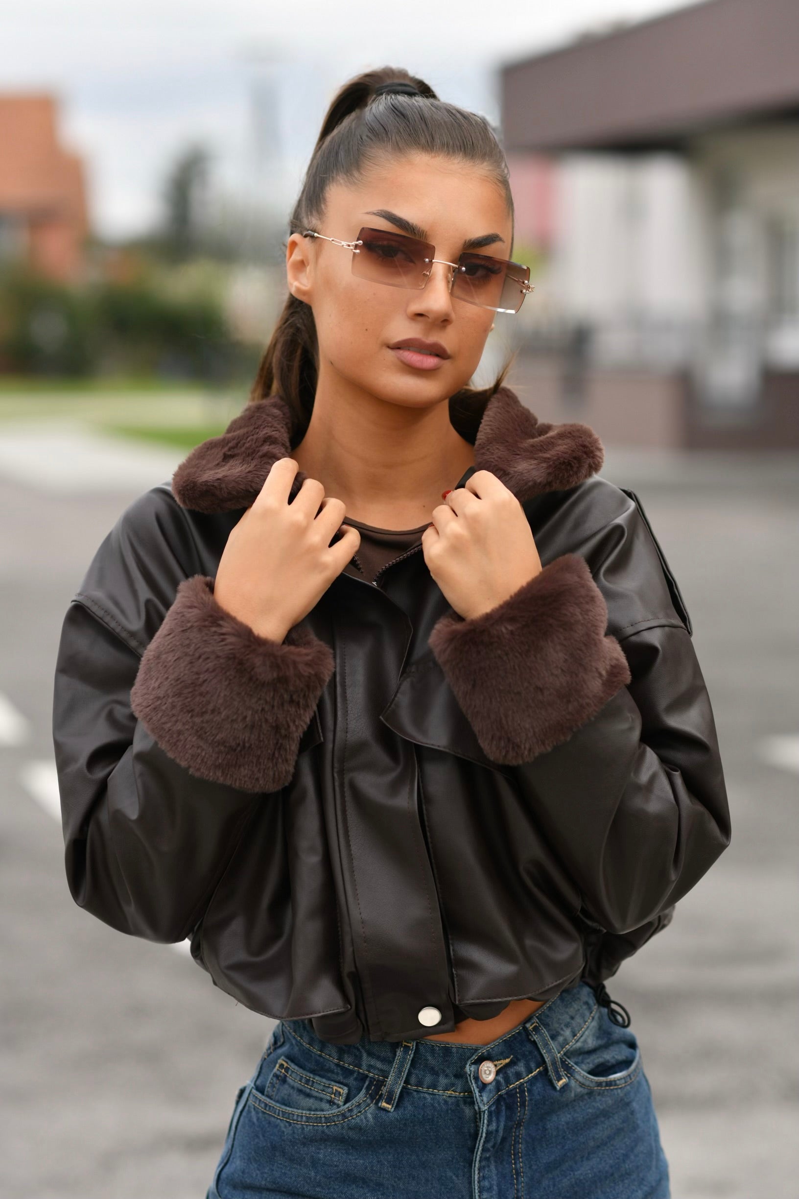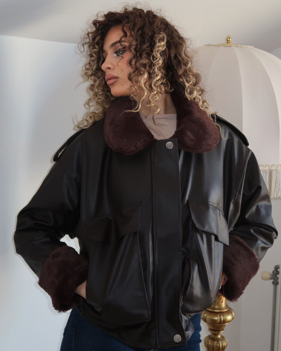Kožna jakna sa veštačkim krznom na kragni i rukavima — moderan omaž klasičnom pilot modelu. Mekana, topla i svedeno glamurozna, savršeno se uklapa u svaki street style look.