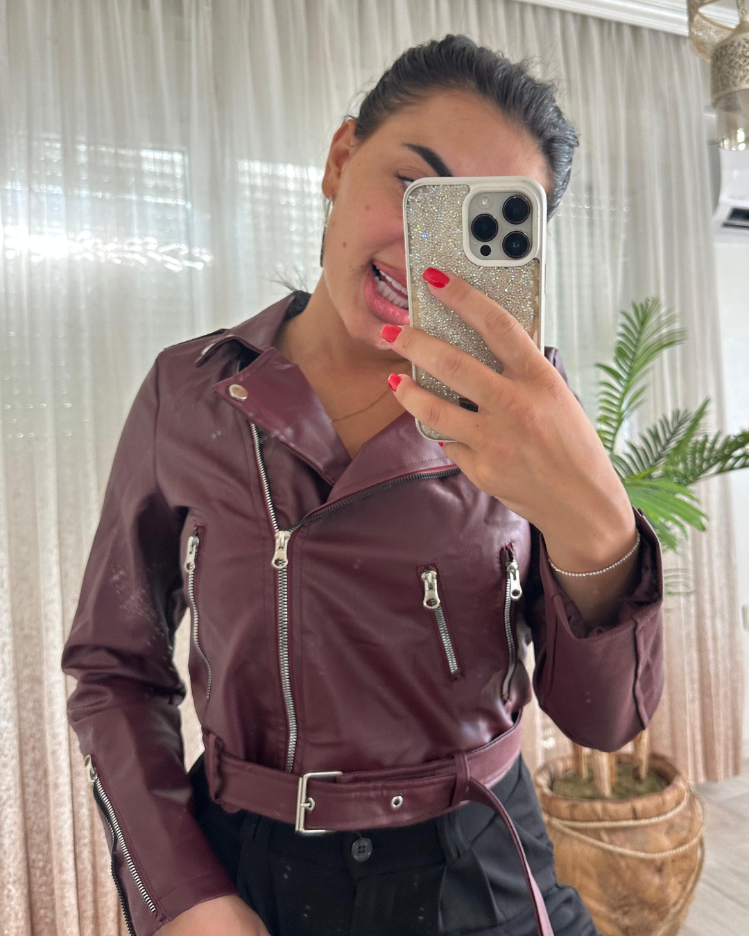 Izrađena od visokokvalitetnog materijala sa efektnim bordo finišem, ova jakna donosi savršen spoj ženstvenosti i snage. Kratki kroj naglašava siluetu, dok detalji na rajsferšlusima i ramenima daju dozu urbanog karaktera.